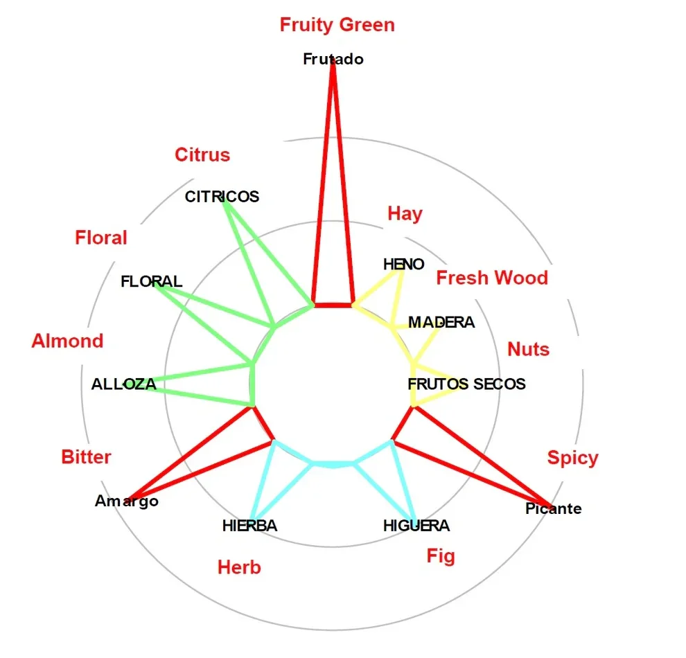 - Gemaakt van een selectie van olijfsoorten, waaronder Villalonga, Arbequina, Blanqueta, Changlot Real, Picual, Alfafara en Genovesa.